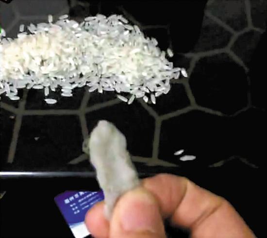 陳先生傳給本報(bào)記者的視頻截圖,視頻顯示煮熟后的“大米”捏不爛