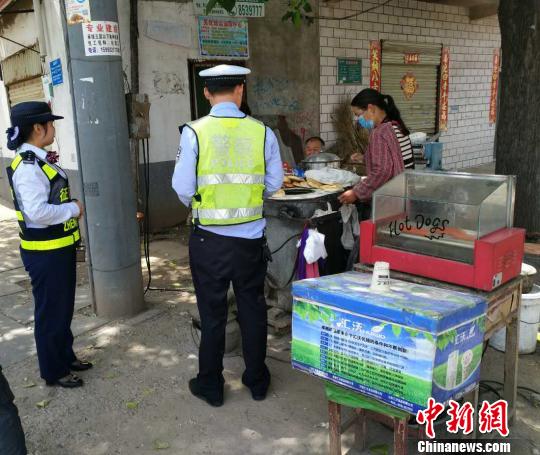 圖為民警向街頭市民詢問老人的家人和住址。 周國芮 攝