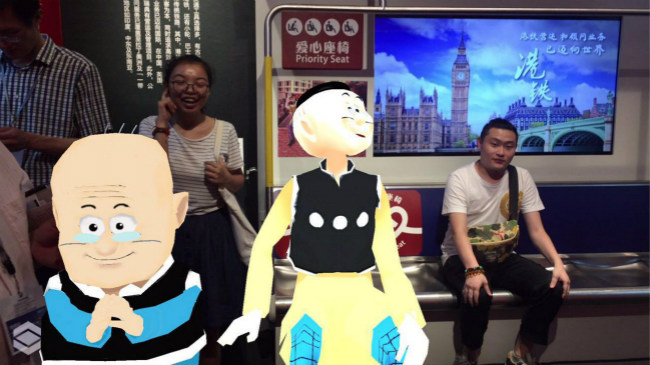 與老夫子漫畫人物拍照: 駐粵辦開發(fā)了一個(gè)拍攝擴(kuò)容實(shí)景的手機(jī)程序,專們給參觀香港館的人士在館內(nèi)下載至自己的手機(jī),與虛擬的香港原創(chuàng)卡通人物”老夫子”坐在地鐵座椅上拍照留念。