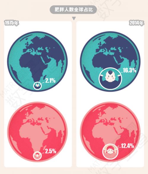 全球肥胖人數(shù)從1975年1億多增加到2014年的6.41億,中美兩國(guó)分別以8960萬和8780萬位列第一和第二。當(dāng)?shù)谝灰彩且驗(yàn)槲覀內(nèi)硕,中?guó)有13.7億人,美國(guó)僅有3.2億,按比例算還是美國(guó)贏。