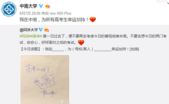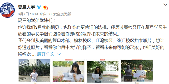 人民網(wǎng)特摘錄了部分名校對(duì)考生的寄語(yǔ),祝福高考,為夢(mèng)想加油!