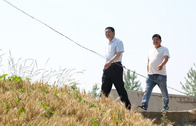 這是安徽省渦陽(yáng)縣鄭店村第一書記牛坤杰(左)實(shí)地查看村內(nèi)的交通建設(shè)情況(5月26日攝)。新華社發(fā)