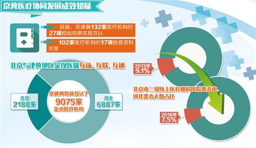 “目前,京津冀132家醫(yī)療機構27項檢驗結果實現(xiàn)互認,102家醫(yī)療機構有17項檢查資料共享。北京與津冀地區(qū)實現(xiàn)醫(yī);フJ、互聯(lián)、互通,僅京冀兩地就互認了9075家定點醫(yī)療機構,其中北京2188家,河北6887家。2016年北京市二級以上醫(yī)療機構出院患者中,河北患者人數(shù)占比從2013年的9.1%下降到7.5%,京冀醫(yī)療協(xié)同發(fā)展成效初顯!北本┦行l(wèi)計委委員、新聞發(fā)言人高小俊介紹。