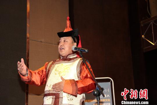 圖為正在內(nèi)蒙古呼和浩特市舉辦的第二屆澳大利亞原住民和中國蒙古族文化研究國際研討會上,內(nèi)蒙古師范大學老師斯琴畢力格向中外學者展示蒙古族長調(diào)!≮w永厚 攝