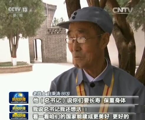 不忘初心、繼續(xù)前進(jìn),在呂梁市興縣,總書記還瞻仰了晉綏邊區(qū)革命紀(jì)念館,參觀了晉綏邊區(qū)政府、晉綏軍區(qū)司令部舊址,并同晉綏邊區(qū)的老戰(zhàn)士老同志代表親切交談。88歲的劉秉濤老人見到總書記時(shí),行了個(gè)莊嚴(yán)的軍禮。