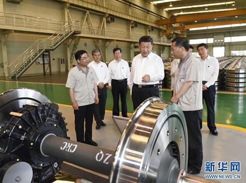 6月22日,中共中央總書記、國(guó)家主席、中央軍委主席習(xí)近平在山西太原考察企業(yè)。這是習(xí)近平在太原重工軌道交通設(shè)備有限公司車輪車間考察。新華社記者 李學(xué)仁 攝