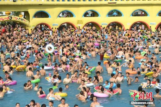 7月16日,重慶持續(xù)高溫天氣,當(dāng)?shù)匾凰蠘穲@內(nèi)游客如下餃子。中新社記者 陳超 攝