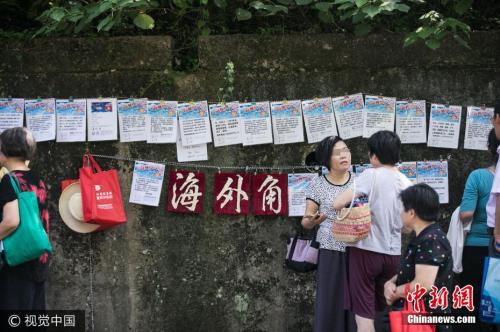 資料圖:2017年7月15日,杭州一條馬路兩邊,數(shù)百名大伯大媽前來“相親”,現(xiàn)場還特別設置了海外學子的專區(qū),貼著的大部分都是70后80后年輕人的信息。 圖片來源:視覺中國