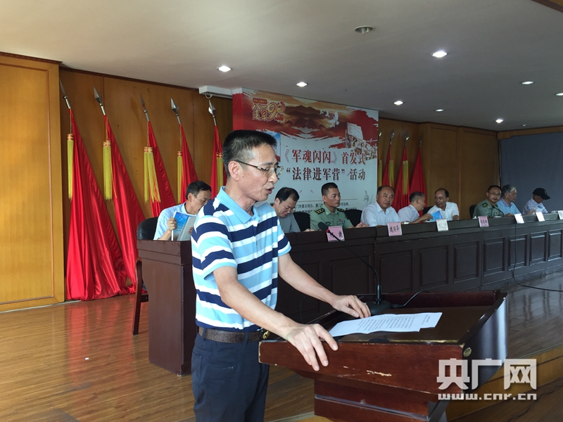 央廣網(wǎng)廈門7月27日消息(記者呂貝娜)為隆重紀(jì)念中國(guó)人民解放軍建軍90周年,7月27日下午,廈門市委文明辦、市雙擁辦、市司法局、市愛國(guó)擁軍促進(jìn)會(huì)、鷺江出版社、市文聯(lián)、市作協(xié)聯(lián)合在廈門駐軍31616部隊(duì)舉辦小說集《軍魂閃閃》首發(fā)式暨“法律進(jìn)軍營(yíng)”活動(dòng)。