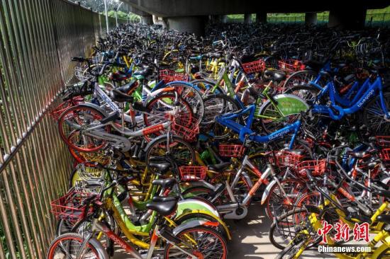 8月8日,數(shù)千輛共享單車(chē)被“遺棄”在北京一高架橋下。中新社記者 賈天勇 攝