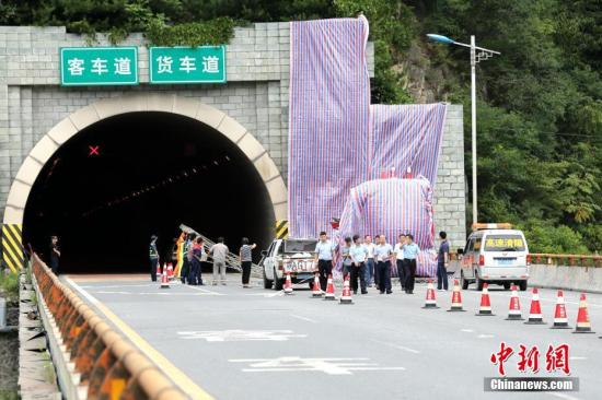 8月10日晚23時許,一輛牌號為豫C88858號的客車自成都駛往洛陽,途經(jīng)京昆高速公路安康段秦嶺一號隧道南口,撞向隧道口發(fā)生交通事故。張遠(yuǎn) 攝
