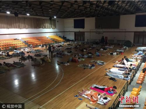 資料圖:2017年7月19日晚21時(shí)許,上海師范大學(xué)徐匯校區(qū)為暑假留校大學(xué)生開放體育館過夜避暑。 胡朔 攝 圖片來源:視覺中國(guó)