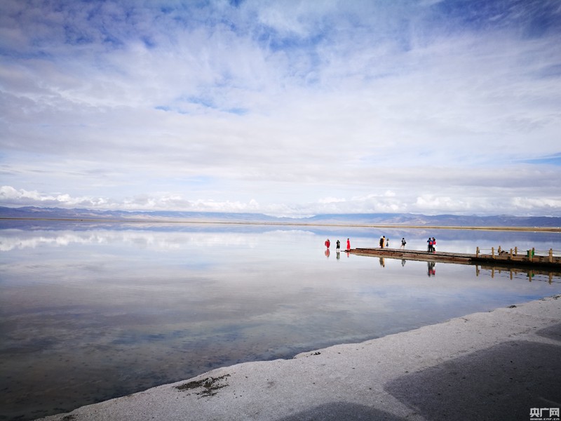 央廣網(wǎng)西寧9月4日消息(記者 林霞)9月3日,全國(guó)臺(tái)聯(lián)“一帶一路”兩岸記者參訪團(tuán)走進(jìn)青海,來(lái)到“天空之境”——茶卡鹽湖。茶卡鹽湖位于青海省海西蒙古族藏族自治州烏蘭縣茶卡鎮(zhèn)。被國(guó)家旅游地理雜志評(píng)為“人一生必去的55個(gè)地方”之一。 “茶卡”是藏語(yǔ),意即鹽池,也就是青鹽的海。在這里,遠(yuǎn)處水與天已沒(méi)有明顯的界限,湖盡頭與天相連,天是湖的一部分,湖是天的補(bǔ)充。