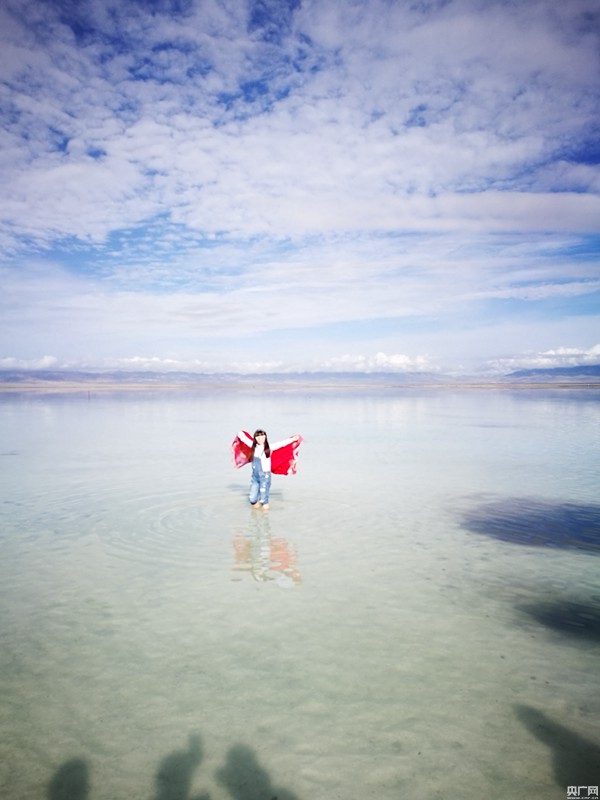似真似幻,攝人心魄的美讓兩岸媒體記者無(wú)不發(fā)出贊嘆,紛紛拿起相機(jī)不斷按動(dòng)快門。臺(tái)灣中評(píng)社記者林谷隆告訴記者,茶卡鹽湖是他一直期待來(lái)的地方,看到湖面上明凈般的倒影,真的好似一面天空之鏡,尤其當(dāng)乘坐觀光小火車欣賞沿路風(fēng)景時(shí)看到有新人在鹽湖中央拍婚紗照,他覺(jué)得以這樣的方式互訴衷腸非常特別,一會(huì)終身難忘。