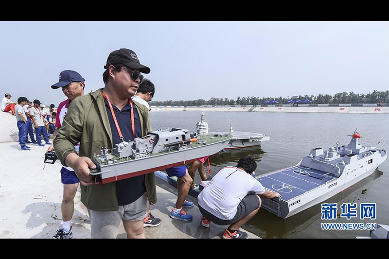 這是在全運(yùn)會群眾項目航海模型比賽中,選手們準(zhǔn)備參加仿真模型立體對抗項目比賽(7月8日攝)。