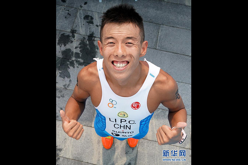 這是以個人名義參賽的業(yè)余選手李鵬程,在完成鐵人三項男子個人賽后留影(9月3日攝)。