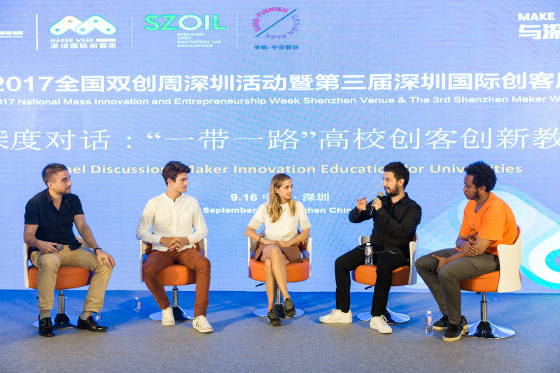 峰會(huì)中,埃塞俄比亞iCog實(shí)驗(yàn)室項(xiàng)目經(jīng)理瑞依·策加耶、Promperu MarcaPeru實(shí)驗(yàn)室負(fù)責(zé)人維克多·古斯塔沃·弗蘭德、MakerTour創(chuàng)客空間/實(shí)驗(yàn)室市場(chǎng)開(kāi)發(fā)者盧卡斯·格拉凡、MakerTour創(chuàng)客空間/實(shí)驗(yàn)室市場(chǎng)開(kāi)發(fā)者瑪麗·勒夫羅以國(guó)際化的視野、互聯(lián)網(wǎng)+的思維,圍繞“一帶一路”高校創(chuàng)客創(chuàng)新教育這一話(huà)題就如何提高創(chuàng)客、高校院所及學(xué)生的創(chuàng)新精神,培育智能硬件創(chuàng)新創(chuàng)業(yè)生態(tài)環(huán)境等進(jìn)行分享交流。