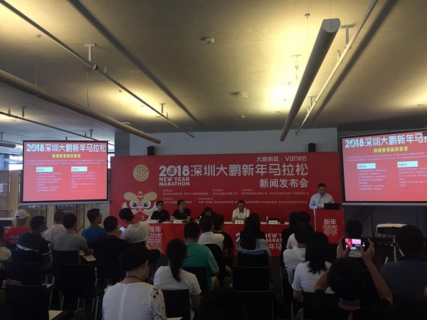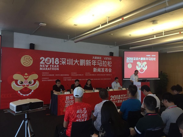 央廣網(wǎng)深圳9月19日消息(記者大為)9月19日下午,2018深圳大鵬新年馬拉松新聞發(fā)布會在深圳大梅沙萬科中心隆重召開,大鵬新區(qū)文體旅游局、萬科企業(yè)股份有限公司、咪咕互動娛樂有限公司等相關(guān)領(lǐng)導(dǎo)以及2018鵬馬“超級粉絲”代表和全國近40家媒體參加了本次發(fā)布會。2018年是深圳大鵬新年馬拉松賽事5周年,本次賽事以“樂跑迎新年,奔跑山海間”為主題,不設(shè)獎金、不以追求成績?yōu)檗k賽目的,致力于讓跑者真正感受到跑出健康,跑出快樂,跑出友誼的“樂跑”精神。本次發(fā)布會主要從2018深圳大鵬新年馬拉松賽事競賽規(guī)程、賽事亮點及報名啟動時間等方面作了詳細介紹。