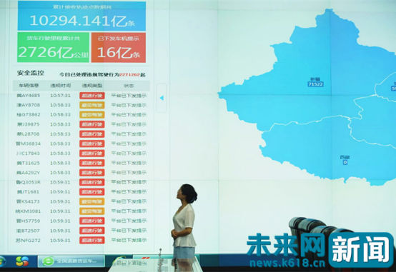 “超速行駛”、“違規(guī)行為已糾正”、“平臺已下發(fā)提示”···· 9月26日上午記者看到,交通運輸部應急指揮大廳的監(jiān)控屏幕上,重點營運車輛數(shù)據(jù)在不斷翻滾,每天500多萬臺北斗導航終端獲得的車輛位置數(shù)據(jù)回傳到營運車輛監(jiān)管服務平臺,保障全國交通應急指揮和日常安全監(jiān)管。