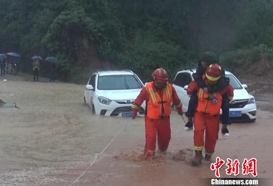中新網(wǎng)湖北恩施10月2日電(張振 劉子軒)10月1日至2日,湖北省恩施市遭遇強(qiáng)降雨,多處積水,多名群眾被困,當(dāng)?shù)叵啦块T緊急救援,成功轉(zhuǎn)移被困人員。