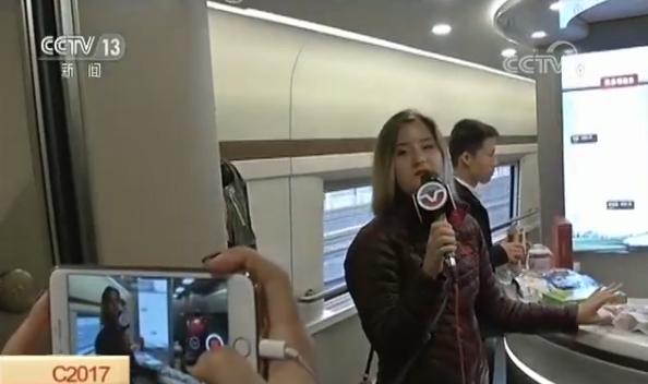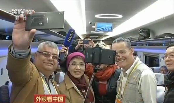 這位在復(fù)興號(hào)高鐵旁進(jìn)行出鏡拍攝的女記者,來(lái)自美國(guó)中文電視臺(tái)。第一次來(lái)北京,她就迫不及待地要體驗(yàn)中國(guó)高鐵。進(jìn)入車(chē)廂后,這些外國(guó)記者們可不像中國(guó)乘客一樣老實(shí)坐著,而是扛著“長(zhǎng)槍短炮”到處尋找這個(gè)中國(guó)“新發(fā)明”到底有何高明之處。