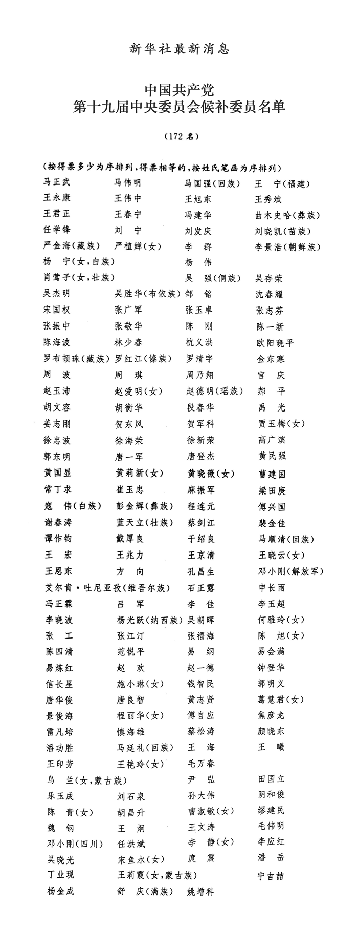 關(guān)鍵詞:中國共產(chǎn)黨;候補(bǔ)委員;中央委員會(huì);名單