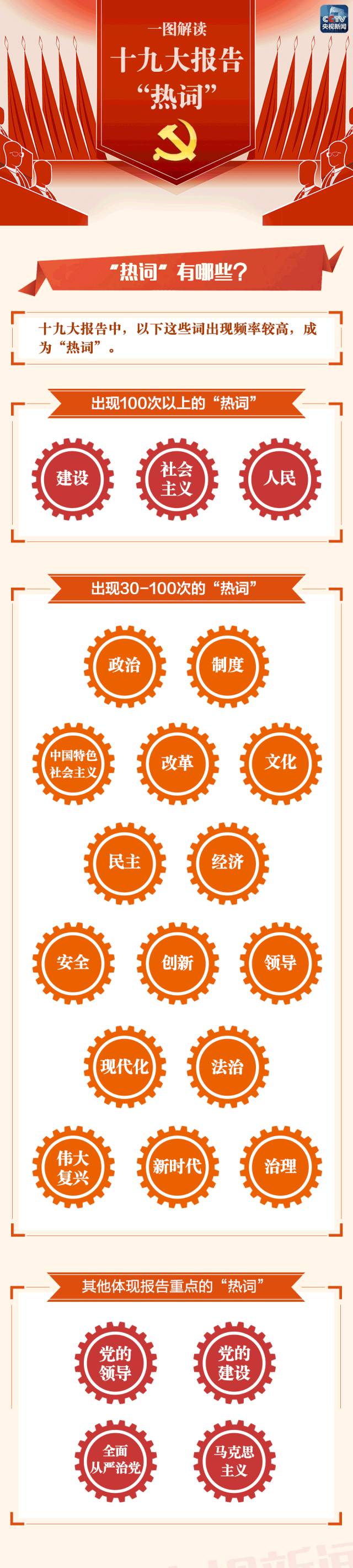 報告中哪些詞最“熱”,哪些詞預(yù)示了未來的發(fā)展方向?相比十八大報告,本次報告又有哪些全新的關(guān)鍵詞?問題的答案盡在圖中↓↓↓