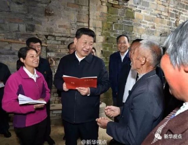 2016年4月,習(xí)近平總書記來到安徽省六安市金寨縣走訪村民,同當(dāng)?shù)馗刹咳罕姽采堂撠毠源笥嫛?新華社記者李濤 攝