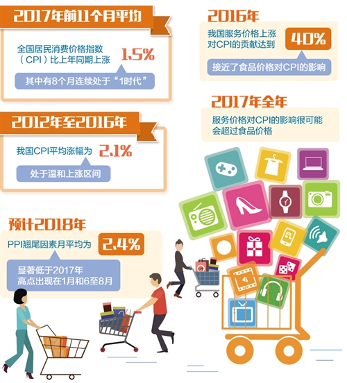 國(guó)家統(tǒng)計(jì)局日前公布數(shù)據(jù)顯示,2017年前11個(gè)月,全國(guó)居民消費(fèi)價(jià)格指數(shù)(CPI)平均比上年同期上漲1.5%,其中有8個(gè)月連續(xù)處于“1時(shí)代”,處于1.2%至1.9%之間。從2017年全年看,我國(guó)物價(jià)水平總體上表現(xiàn)溫和,完成年初制定的全年物價(jià)調(diào)控目標(biāo)已無(wú)懸念。