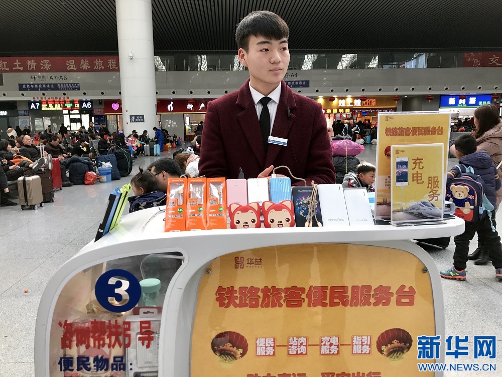 “我家在南昌,我喜歡做志愿者,因為可以幫助到很多回家的人!蹦喜炯t土情服務(wù)臺志愿者胡麗娟笑著說道,胡麗娟是一位江西師范大學(xué)的大三學(xué)生,是今年南昌鐵路局春運“暖冬行動”招募的志愿者,她每天的任務(wù)是給候車室內(nèi)前來咨詢的旅客提供幫助!澳喜敬哼\高峰時期,5分鐘前來咨詢的旅客有200多位,雖然很累,但是能接觸不同的旅客,我也能學(xué)到很多,我覺得一切都值得!焙惥暾f。