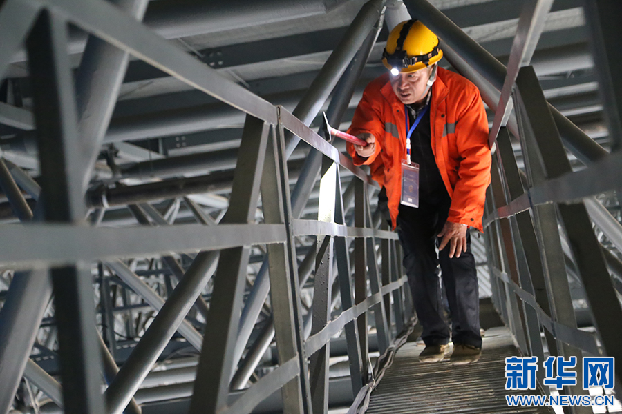 徐小云正在對(duì)檢修馬道進(jìn)行檢查。