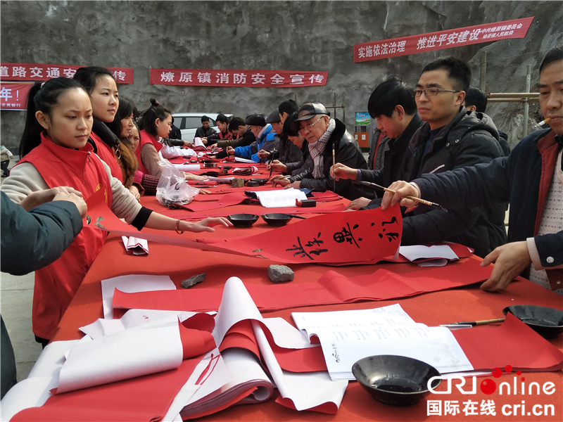 活動中縣扶貧、衛(wèi)生、教育等部門的工作人員向群眾發(fā)放宣傳資料,開展義診和接受群眾咨詢等活動。在書贈春聯(lián)處,人們?nèi)宄扇簢谝黄,待民間書法家大筆落成,便迫不及待地把春聯(lián)攥在手中,將對新春的寄語和未來生活的期盼紛紛帶回家。