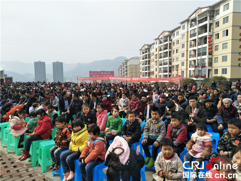 國際在線消息(記者 令狐少萍):中國貴州省桐梓縣9日舉行了2018“遷新家、過新年、謝黨恩、戀鄉(xiāng)愁”花園移民新村迎新春文化活動。5000多名居于花園移民新村、蟠龍、楚米、桐楚大道4個易地扶貧搬遷安置點的搬遷群眾與當(dāng)?shù)鼐用、黨員干部一起吃湯圓、貼春聯(lián)、看演出,共同迎接新春佳節(jié)。