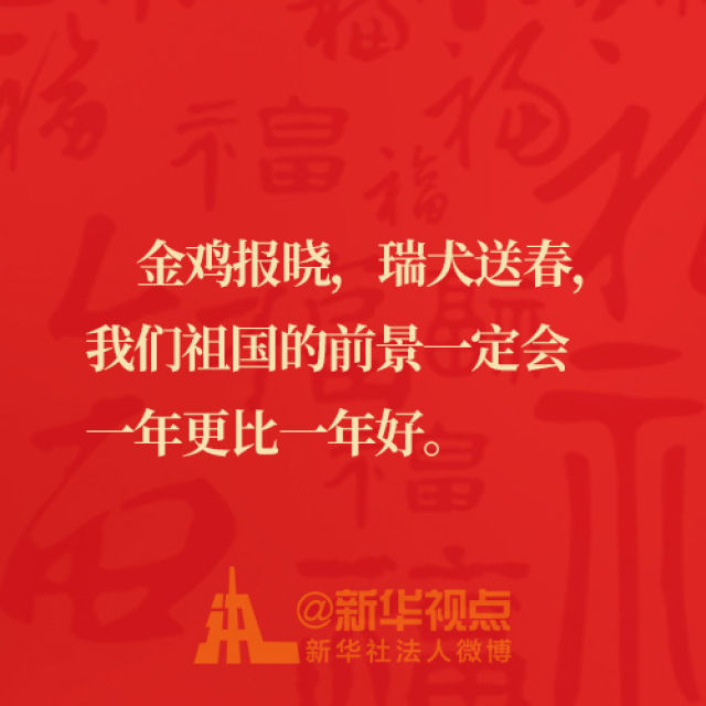 習(xí)近平總書記在2018年春節(jié)團(tuán)拜會(huì)上發(fā)表重要講話說:① 我們祖國(guó)的前景一定會(huì)一年更比一年好。②春節(jié)是新的開始,預(yù)示著新的希望。③千家萬(wàn)戶都好,國(guó)家才能好,民族才能好。④奮斗者是精神最為富足的人。⑤新時(shí)代是奮斗者的時(shí)代。一起品味、學(xué)習(xí)總書記的新春金句