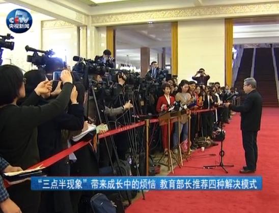 教育部部長 陳寶生:三點半現(xiàn)象之所以會成為年輕父母們和整個社會關(guān)注的一個難題,這是中國經(jīng)濟社會發(fā)展,中國教育發(fā)展特定階段的一個產(chǎn)物。它有什么特點呢?就是關(guān)心這個問題的年輕父母們,他們正處在職業(yè)發(fā)展的關(guān)鍵階段,他們正處于孩子寶貝撫育的關(guān)鍵階段,這個現(xiàn)象表現(xiàn)在大中城市,他們沒有時間校后去接孩子,但是孩子到三點半就得放學,這個時間是這樣。就是三點半之前孩子是在校學習時間,這個責任是學校的。三點半之后孩子是在家生活的時間,這個責任是家長的。但是由于分工,由于作息時間的不匹配,他們沒有辦法去接孩子,所以就造成了很大的困擾,帶來了一種成長中的煩惱,發(fā)展中的困難。