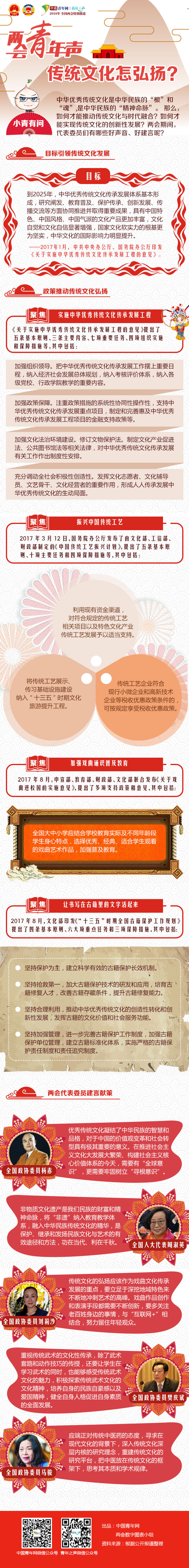 中國青年網(wǎng)北京3月15日電中華優(yōu)秀傳統(tǒng)文化是中華民族的“根”和“魂”,是中華民族的“精神命脈”。那么,如何才能推動傳統(tǒng)文化與時代融合?如何才能實現(xiàn)傳統(tǒng)文化的創(chuàng)新性發(fā)展?兩會期間,代表委員們有哪些好聲音、好建言呢?