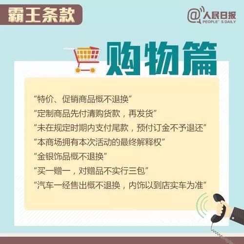 今年政府工作報告指出,“對各類侵害消費者權(quán)益的行為,要依法懲處、決不姑息”。今天就是3·15“國際消費者權(quán)益日”了,“先簽收后驗貨”“禁止自帶酒水”“特價、促銷商品概不退換”…這些其實都是霸王條款,遇到果斷投訴!為自己權(quán)益,必看!