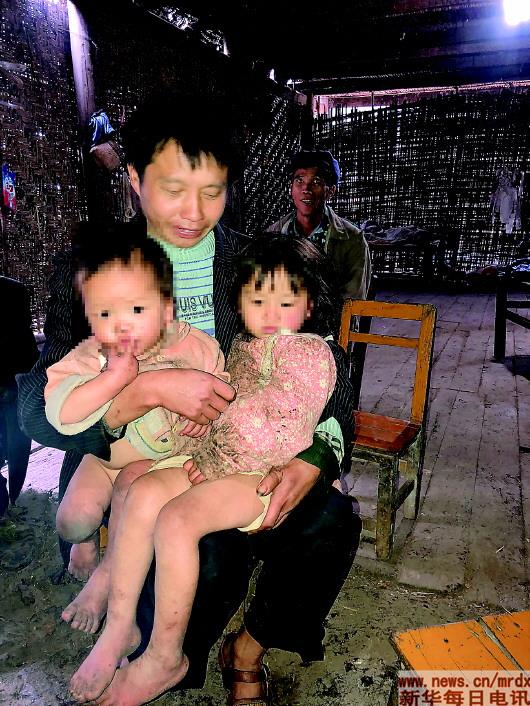 他看起來并不悲觀,他將2歲的兒子和6歲的女兒抱在懷中,孩子光著的腿已凍得通紅。冬日寒風(fēng)凜冽,我們擔心孩子會凍著,他卻擺著手說:不冷、不冷。