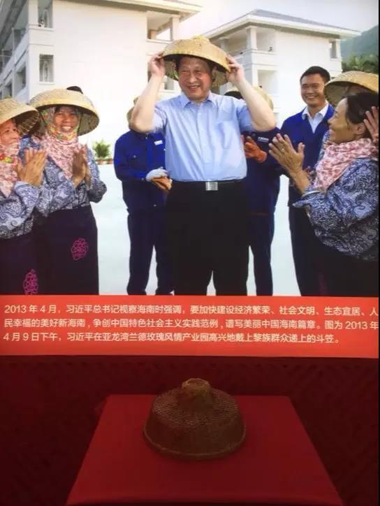 五年前,2013年4月9日,習(xí)近平在亞龍灣蘭德玫瑰風(fēng)情產(chǎn)業(yè)園考察時(shí),接過黎族花農(nóng)李玉梅摘下的這頂竹笠戴到了頭上。臨走時(shí),他語重心長地說,“小康不小康,關(guān)鍵看老鄉(xiāng)”,這句話由此傳遍全國。