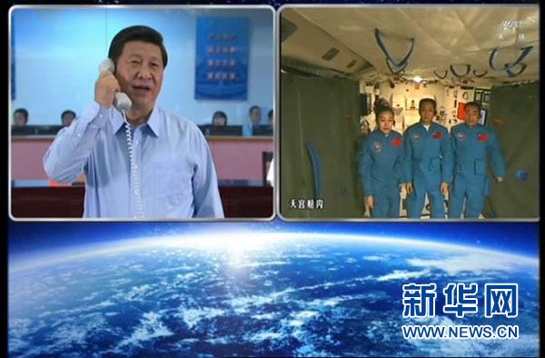 2013年6月,習(xí)近平在北京航天飛行測(cè)控中心與正在天宮一號(hào)執(zhí)行任務(wù)的三位航天員進(jìn)行天地通話時(shí)表示,飛天夢(mèng)是強(qiáng)國(guó)夢(mèng)的重要組成部分,隨著中國(guó)航天事業(yè)的快速發(fā)展,中國(guó)人探索太空的腳步會(huì)邁得更大、更遠(yuǎn)。