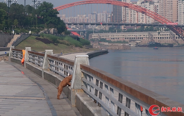圖說:憑欄遠(yuǎn)眺的小狗。黃佳琪 攝