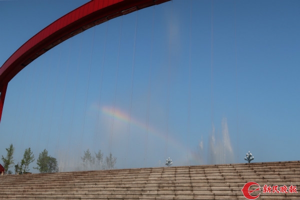 圖說:目前全國最大的室外天幕,可結(jié)合水、聲、光、電手段營造出美輪美奐的水幕表演。黃佳琪 攝