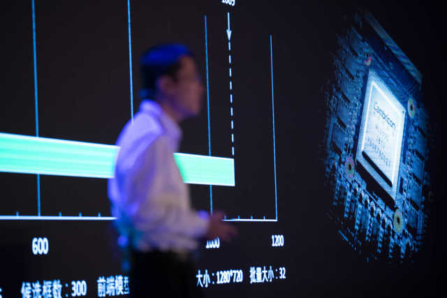 5月3日,在上海國際會議中心舉行的發(fā)布會上,寒武紀科技公司首席執(zhí)行官陳天石介紹新發(fā)布的國內(nèi)首款云端人工智能芯片。新華社記者 金立旺 攝