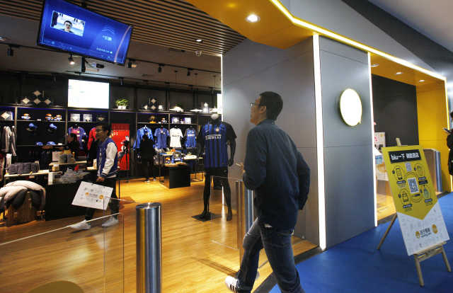 上海一名消費者通過面部識別進入位于楊浦區(qū)的“無人店”(2017年11月6日攝)。新華社記者 方喆 攝