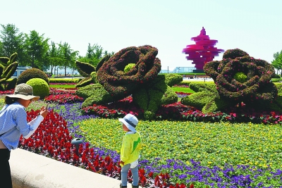 游人在青島五四廣場花壇前拍照。新華社發(fā)