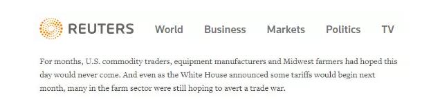 據(jù)《路透社》報(bào)道,幾個(gè)月來,美國的大宗商品交易商、設(shè)備制造商以及中西部的農(nóng)民都希望貿(mào)易戰(zhàn)永遠(yuǎn)不要打響。