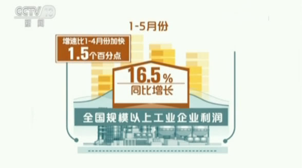 1到5月份,全國(guó)規(guī)模以上工業(yè)企業(yè)利潤(rùn)同比增長(zhǎng)16.5%,增速比1到4月份加快1.5個(gè)百分點(diǎn);其中,5月份增長(zhǎng)21.1%,延續(xù)了快速增長(zhǎng)的勢(shì)頭。