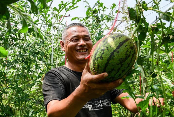 他發(fā)現(xiàn)大棚西瓜近年來(lái)市場(chǎng)行情不錯(cuò)