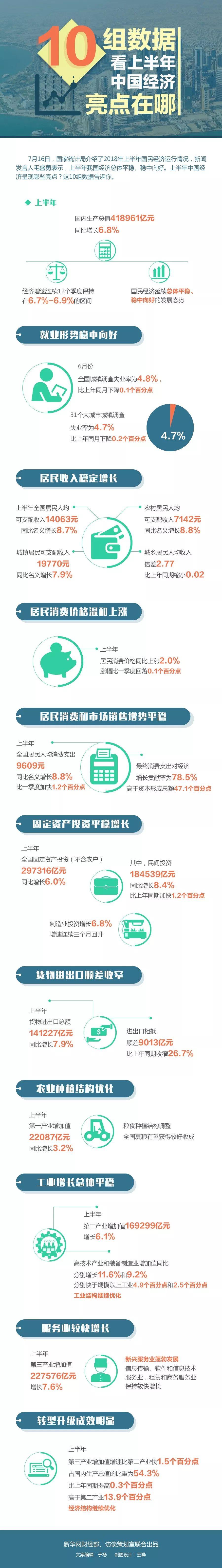 7月16日上午,國家統(tǒng)計局公布多項宏觀經(jīng)濟(jì)數(shù)據(jù)。2018年上半年,國內(nèi)生產(chǎn)總值(GDP)同比增長6.8%,國民經(jīng)濟(jì)運行延續(xù)總體平穩(wěn),穩(wěn)中向好的發(fā)展態(tài)勢。