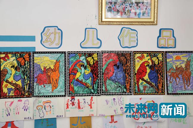 2018年7月,“脫貧攻堅(jiān)”在行動(dòng)一行來(lái)到新疆塔什庫(kù)爾干縣皮勒村,圖為皮勒村幼兒園,孩子們的作品。未來(lái)網(wǎng)記者 鞏帥 攝